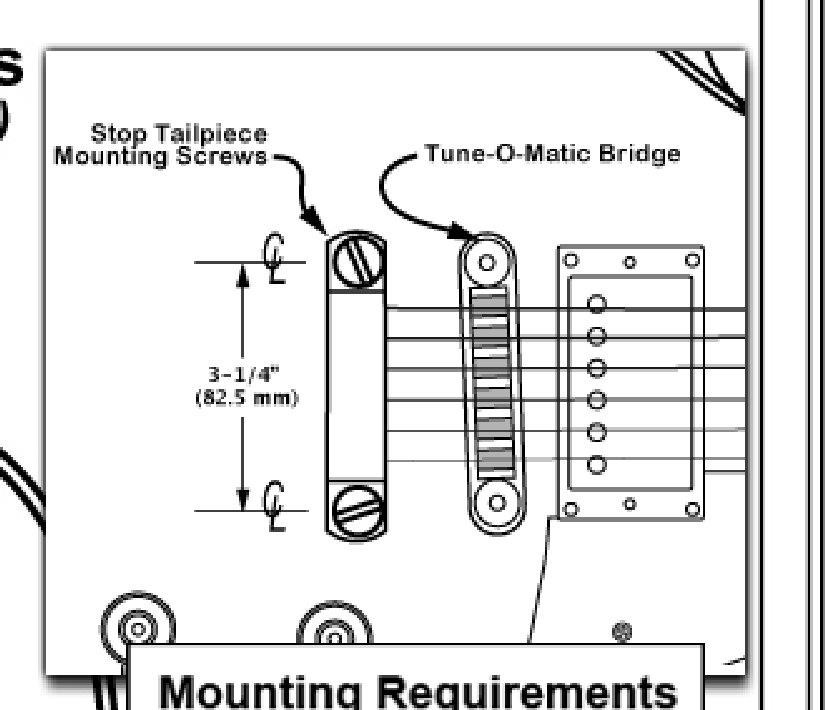 6 INCHES FROM THE END OF THE GUITAR TO THE EXACT CENTERLINE OF THE STOP TAILPIECE-SEE DIAGRAM PICTURE