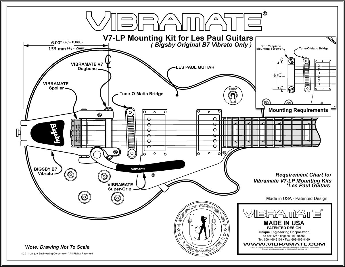 6 INCHES FROM THE END OF THE GUITAR TO THE EXACT CENTERLINE OF THE STOP TAILPIECE-SEE DIAGRAM PICTURESRefer To The Vibramate Online Model Guide First Before OrderingIF YOUR GUITAR ISNT LISTED ON THE VIBRAMATE MODEL GUIDE THIS KIT WILL NOT WORK FOR YOUR GUITARWILL NOT FIT 335 SERIES GUITARS
