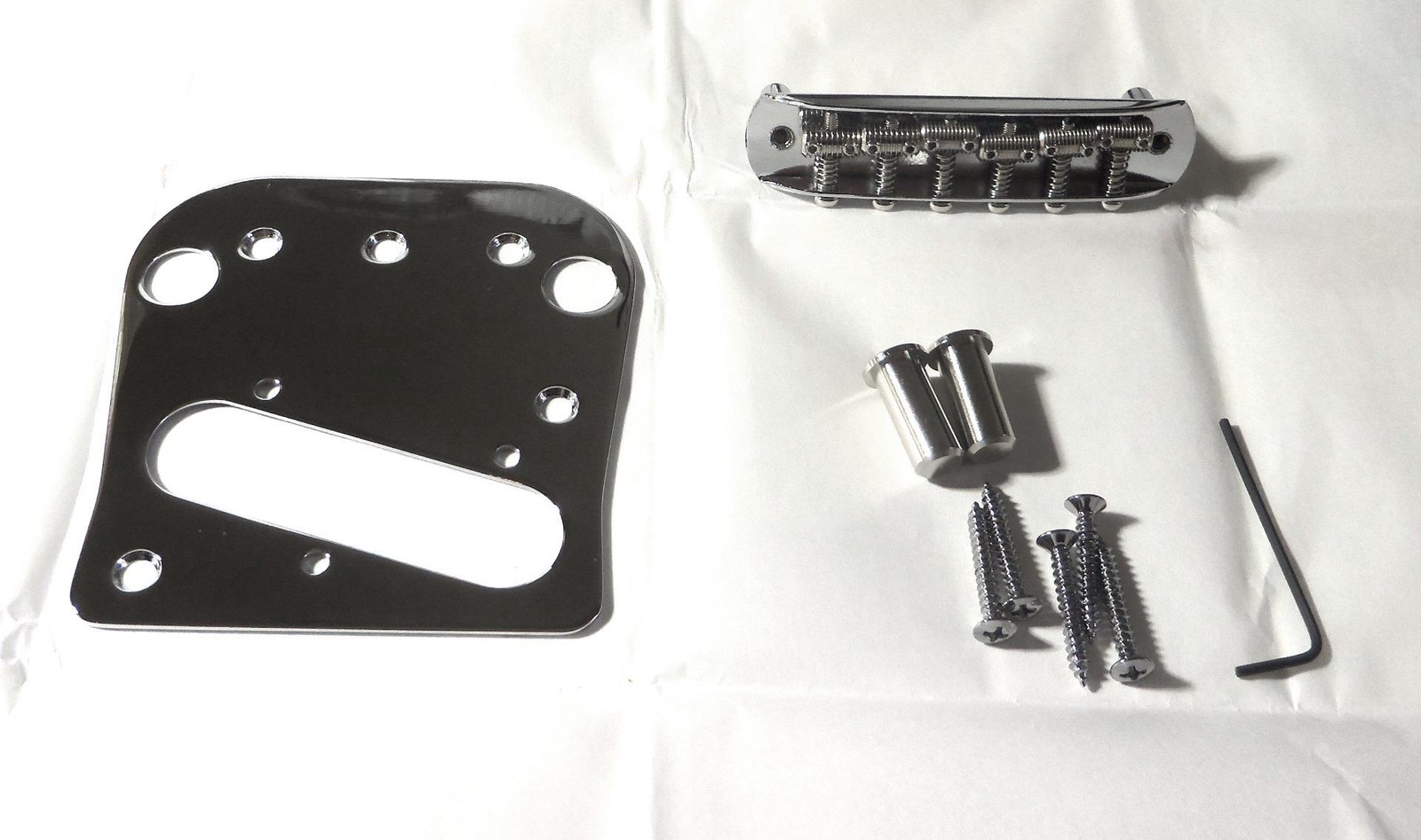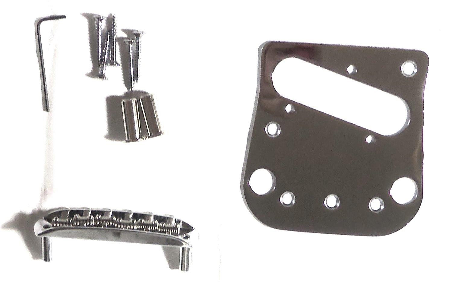 B5 Pinless Tailpiece,Bridge, bridge bushings, bridge plate, bridge plate mounting screws & hex key.Made for the Fender Telecaster but can also be installed on other flat top solid body electric guitars that utilize the Bigby B5 such as the Gibson SG, Les Paul Special, Rickenbacker 325.Made in the USA.