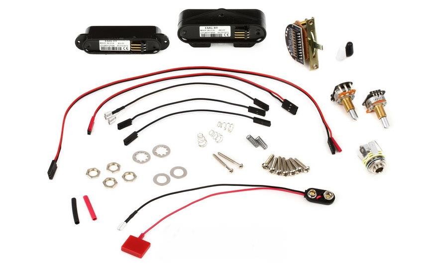 Brand New EMG Active T Set For Telecaster.Black.All Of The Parts Needed For Installation Are Included.From EMG: PACKAGE INCLUDES EMG’S EXCLUSIVE SOLDERLESS INSTALL SYSTEM: 1 25k volume pot 1 25k tone pot 1 stereo output jack 1 3 way selector switch and tip 2 pickup cable 2 connect cables 1 output cable 1 battery cable The EMG T Set offers a modern upgrade to the iconic Telecaster™ pickup, delivering the signature twang and punch with enhanced clarity and zero hum. The bridge pickup (RT) provides the classic chime without the harsh “ice pick” highs, along with a rich low-end response. When overdriven, it delivers powerful sustain and edge, perfect for rock and beyond.The neck pickup (FT) balances clarity, warmth, and rich harmonic detail, seamlessly complementing the bridge pickup for a versatile tone. Featuring Alnico magnets and custom-designed coils, the T Set expands your tonal range with fuller sound and broader bandwidth, surpassing standard Tele pickups. Ideal for rock, country, blues, fusion, and R&B, the EMG T Set is easy to install thanks to its solderless wiring system.