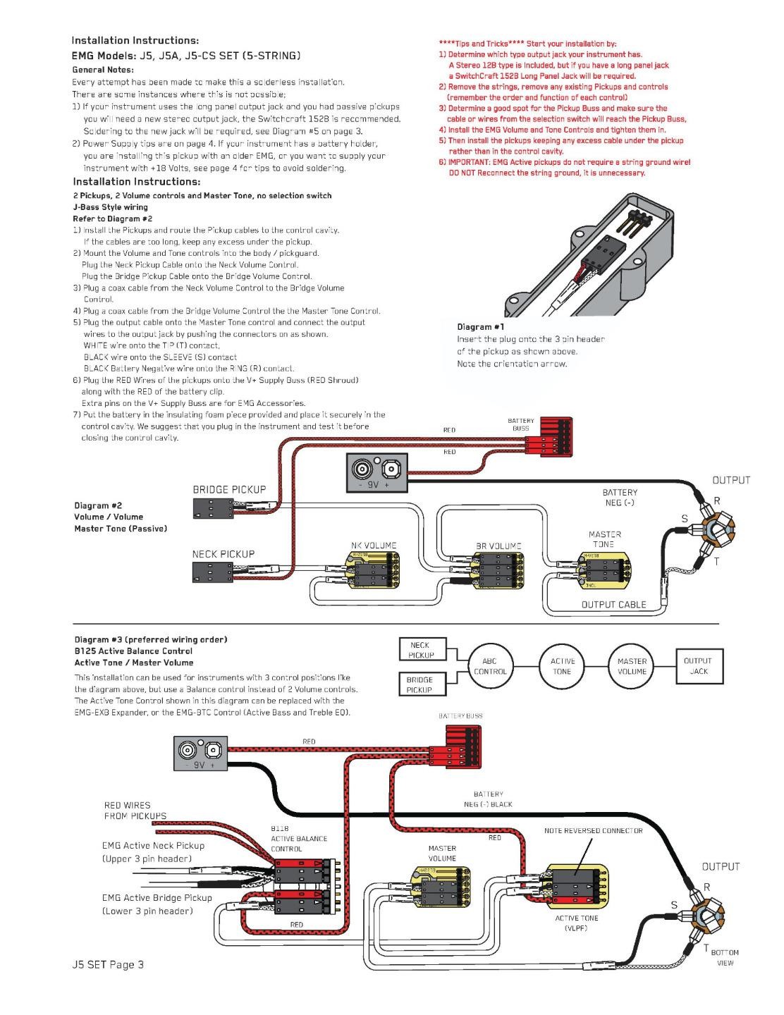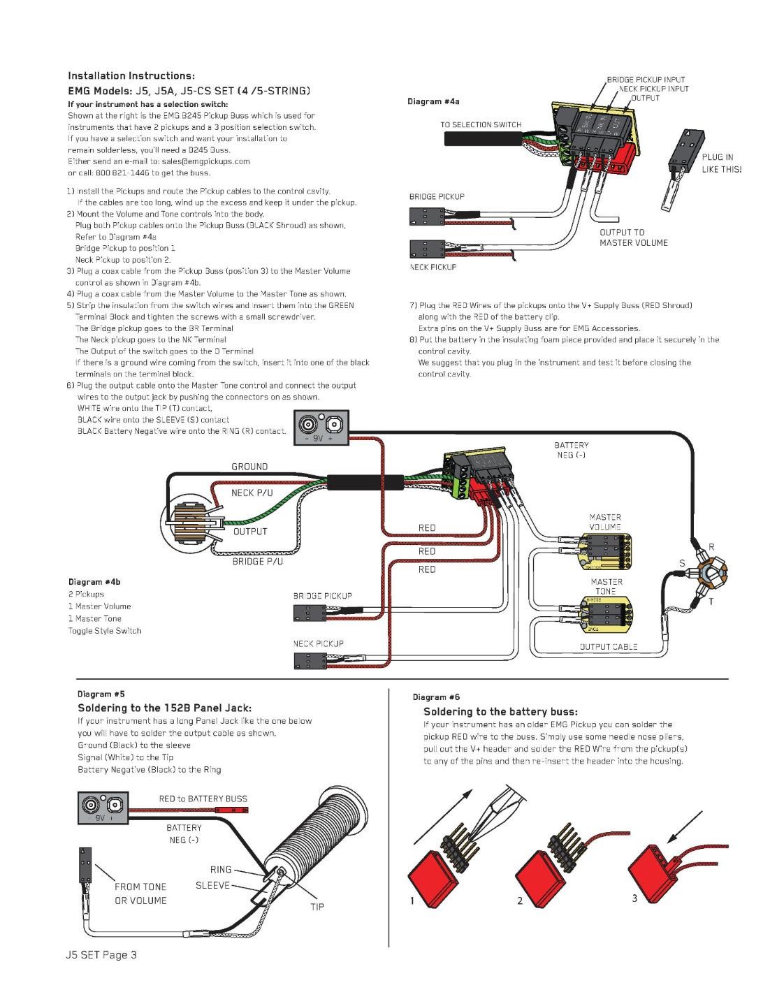 | EMG J5 Active 5-String Jazz Bass Pickup Set~With Wiring Kit~Black~USA~Brand New