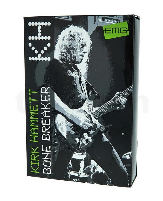 Brand New EMG Active Kirk Hammett Bone Breaker Humbucker Pickup Set.Black Covers.All Of The Parts Needed For Installation Are Included.From EMG: Package Includes EMG’s exclusive Solderless Install System: 2 25k volume pot 2 25k tone pot 1 battery bus 1 stereo output jack 1 two pickup in/out bus 2 pair mounting screws and springs 2 pickup cables 4 connect cables 1 output cable 1 battery cable The Kirk Hammett Bone Breaker set is the result of taking the success of Metallica tone and adding some new elements without sacrificing gain for clean or vice-versa. By making slight pre-amp adjustments and combining Alnico 5 and Ceramic magnets the perfect tone-beast was created. The Bone Breaker set consist of the BB-B Ceramic bridge and the BB-N Alnico 5 neck pickups. If you are looking for rhythm or lead tone, the Kirk Hammett Bone Breaker set offers crisp crushing leads or smooth rounded rhythm tone at the flip of the selector switch.