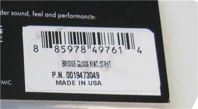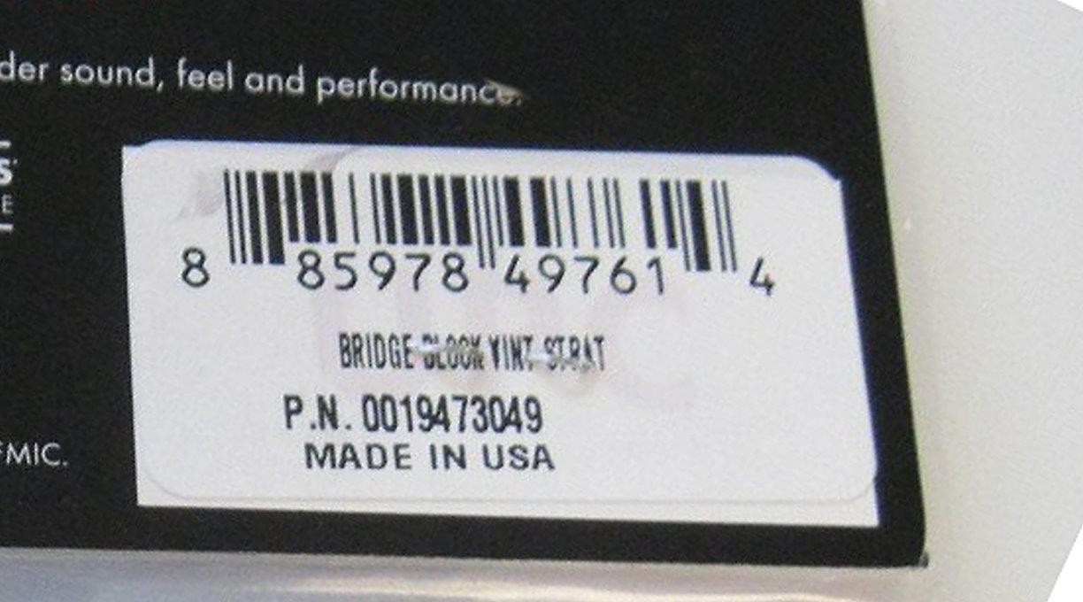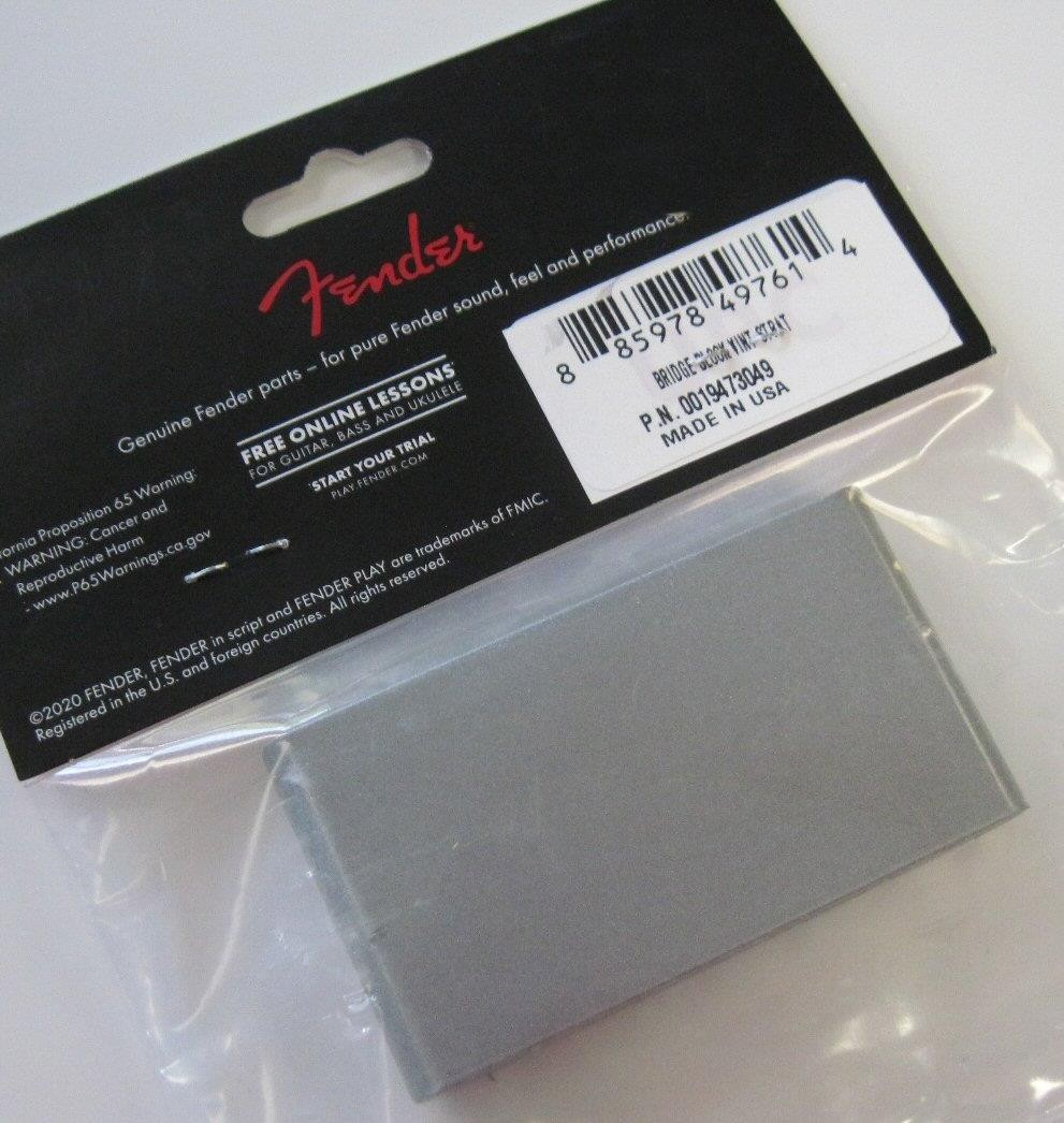 Brand New Genuine Fender® Right Handed USA Vintage RI `57/62 Stratocaster® Solid Steel Bridge Block.Pre Tapped For A 10-32 threaded tremolo arm.Will fit Fender 0019470000 ( And Gold Version-Not Sold Seperately From Fender ) ,Allparts BP-0611-002, BP-0611-010 and Kluson KVTPB, KVTPC And KVTPG 6 point bridge plates with 2 3/16″ string spacing.Will Not Fit The Mexican Standard Or The Import Model Bridge Plates.Choose between Gold or Chrome bridge base mounting screws and message me during checkout in the “message to seller” box.Made In The USA.