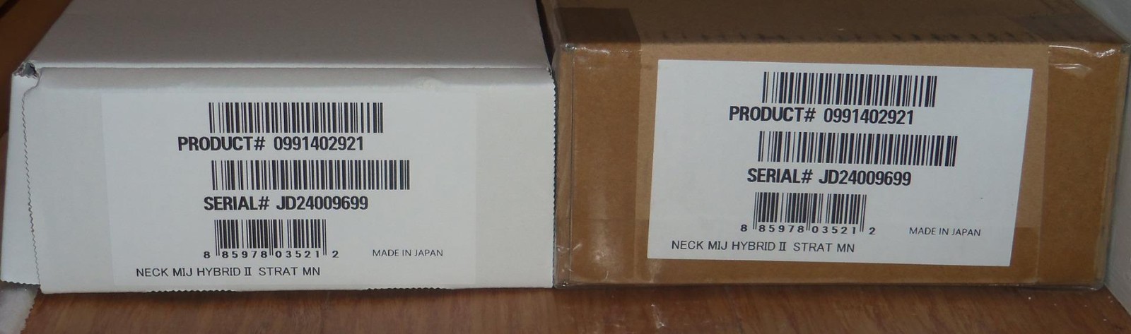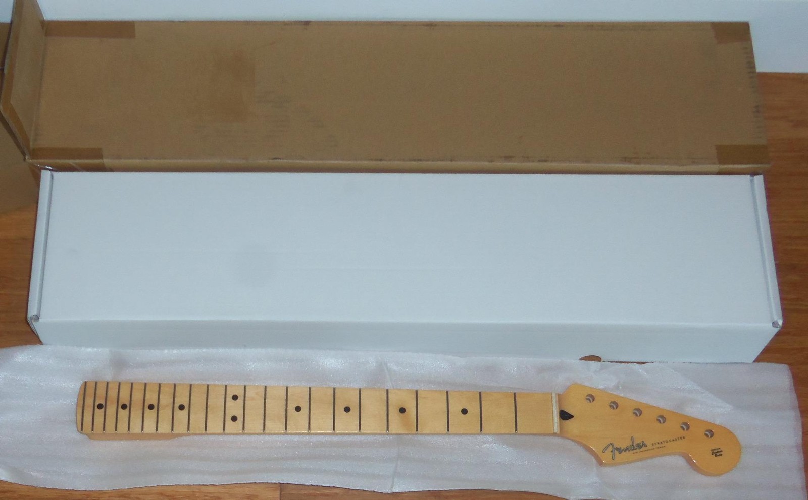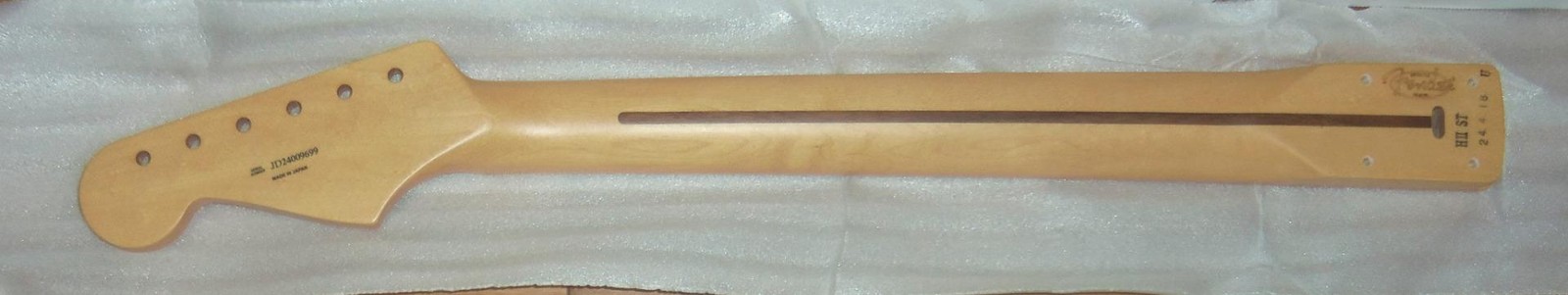 Brand New Genuine Fender Japan Hybrid ll Stratocaster One Piece Maple Neck.8.5mm Peg Holes.This is a new neck from the factory & is not from a parted out Strat.The neck in the pics is the same neck you will receive.Gloss Urethane Face With A Satin Urethane Back.Will ship Fender factory packaged ( Double Boxed ) as shown.From Fender: