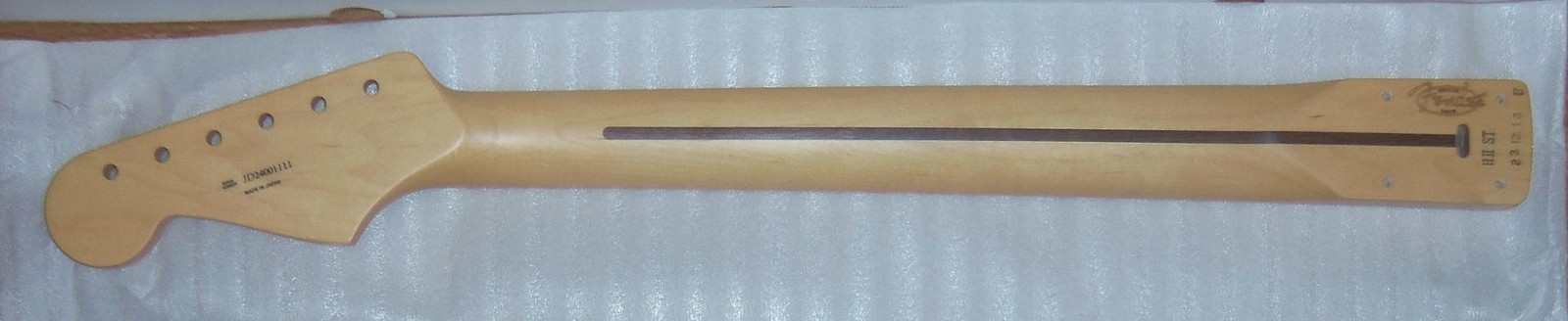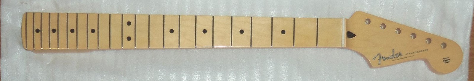 Brand New Genuine Fender Japan Hybrid ll Stratocaster One Piece Maple Neck.8.5mm Peg Holes.This is a new neck from the factory & is not from a parted out Strat.The neck in the pics is the same neck you will receive.Gloss Urethane Face With A Satin Urethane Back.Will ship Fender factory packaged ( Double Boxed ) as shown.From Fender: