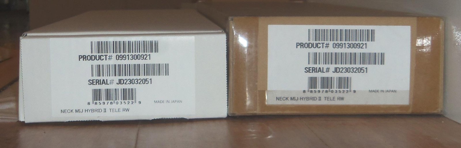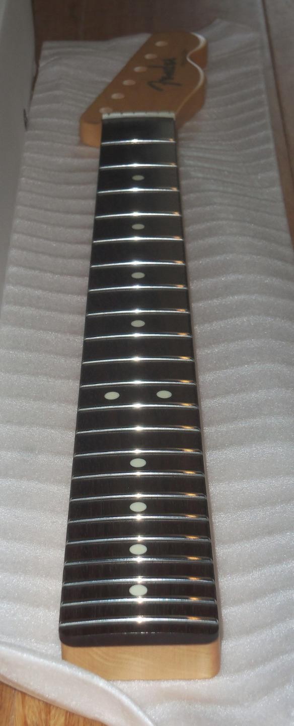 Brand New Genuine Fender Japan Hybrid ll Telecaster Maple/Rosewood Neck.8.5mm Peg Holes.This is a new neck from the factory & is not from a parted out Tele.The neck in the pics is the same neck you will receive.Will ship Fender factory packaged ( Double Boxed ) as shown.From Fender: