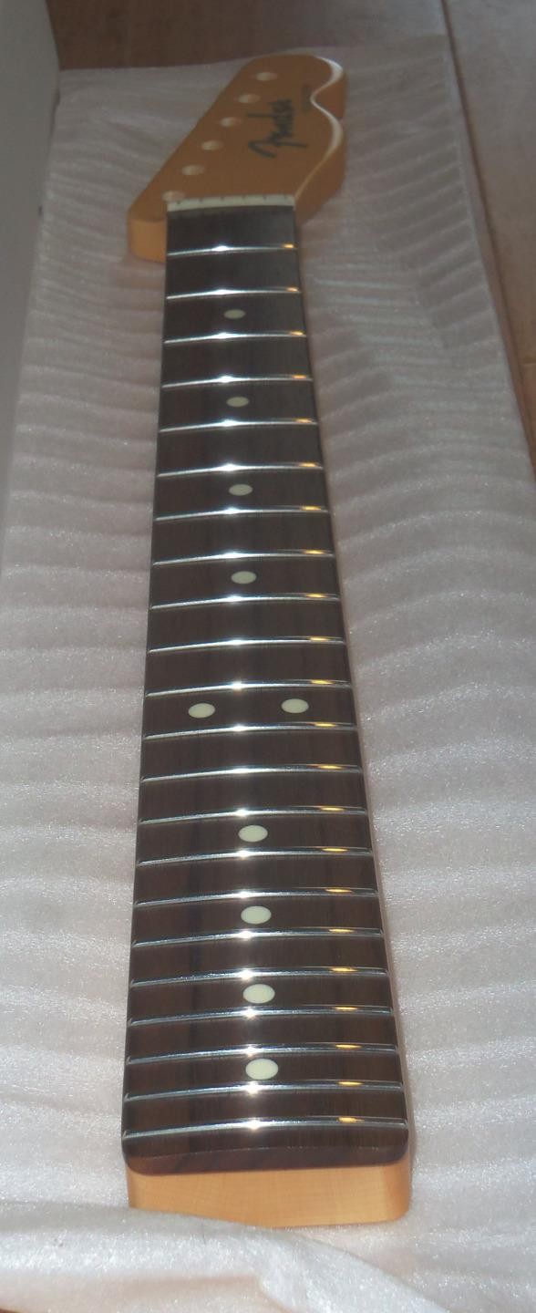 Brand New Genuine Fender Japan Hybrid ll Telecaster Maple/Rosewood Neck.8.5mm Peg Holes.This is a new neck from the factory & is not from a parted out Tele.The neck in the pics is the same neck you will receive.Will ship Fender factory packaged ( Double Boxed ) as shown.From Fender: