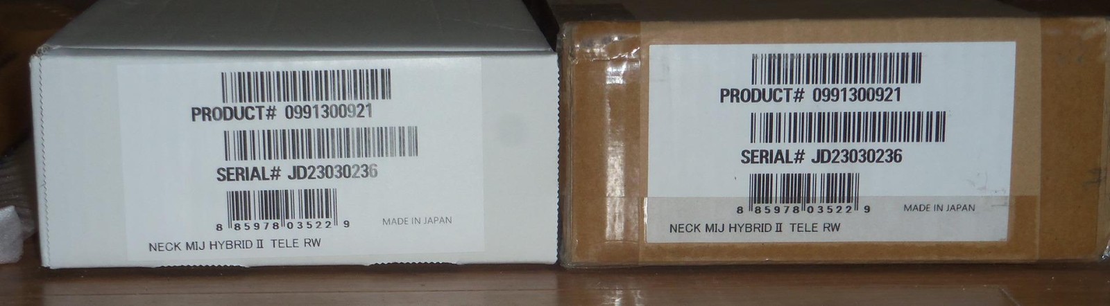 Brand New Genuine Fender Japan Hybrid ll Telecaster Maple/Rosewood Neck.8.5mm Peg Holes.This is a new neck from the factory & is not from a parted out Tele.The neck in the pics is the same neck you will receive.Will ship Fender factory packaged ( Double Boxed ) as shown.From Fender: