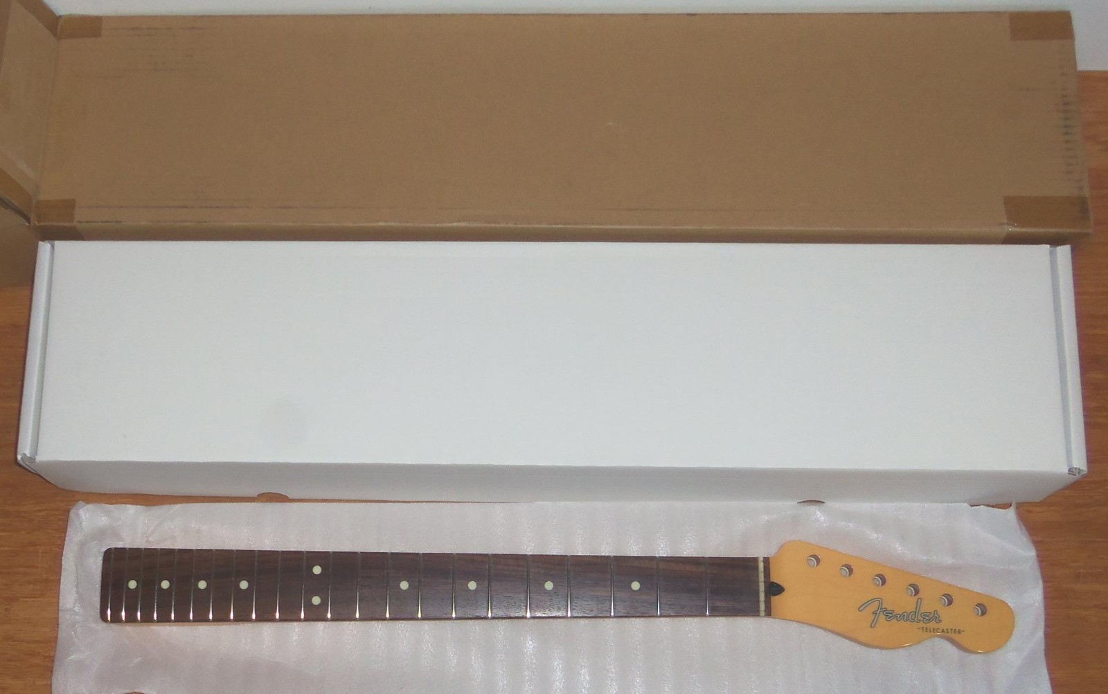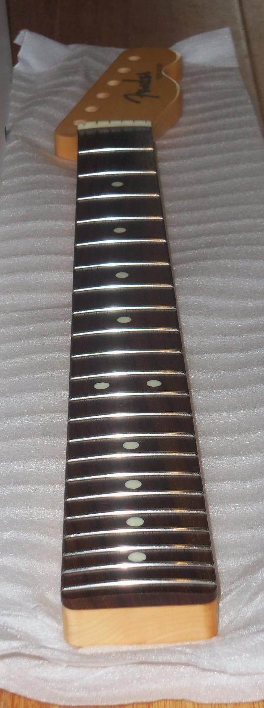 Brand New Genuine Fender Japan Hybrid ll Telecaster Maple/Rosewood Neck.8.5mm Peg Holes.This is a new neck from the factory & is not from a parted out Tele.The neck in the pics is the same neck you will receive.Will ship Fender factory packaged ( Double Boxed ) as shown.From Fender: