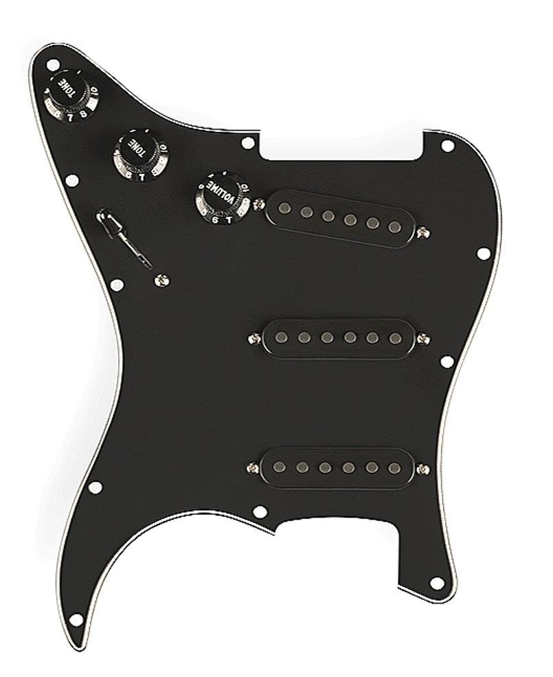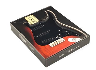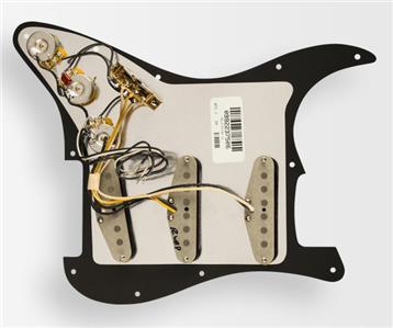 New Open Box ( Customer Return ) Genuine Fender® Factory Assembled Pure Vintage `65 Loaded Pickguard.RWRP Middle Pickup.Black Pickguard, Black Pickup Covers,Knobs & Switch Tip.Fender 250K CTS pots & Fender 5 way switch.Will Ship Fender Factory Boxed As Shown.From Fender: No other pickups give you the powerful, clean and clear surf rock tones of mid-’60s Stratocaster guitars like dutifully constructed, meaty-sounding Pure Vintage ’65 Strat pickups. From vintage bobbin construction to genuine original-era cloth wiring, all Fender Pure Vintage pickups are wound to precise specifications for authentic, traditional Fender tone and performance. The addition of a reverse wound reverse polarity middle pickup eliminates 60-cycle hum in positions 2 and 4 and adds the classic Stratocaster quack to those positions.Features: Formvar-coated magnet wire improves overall brightness Alnico 5 magnets add more focus and enhanced dynamics Staggered pole pieces balance volume and output across every string Wax-potted Reverse-wound middle pickup to eliminate hum