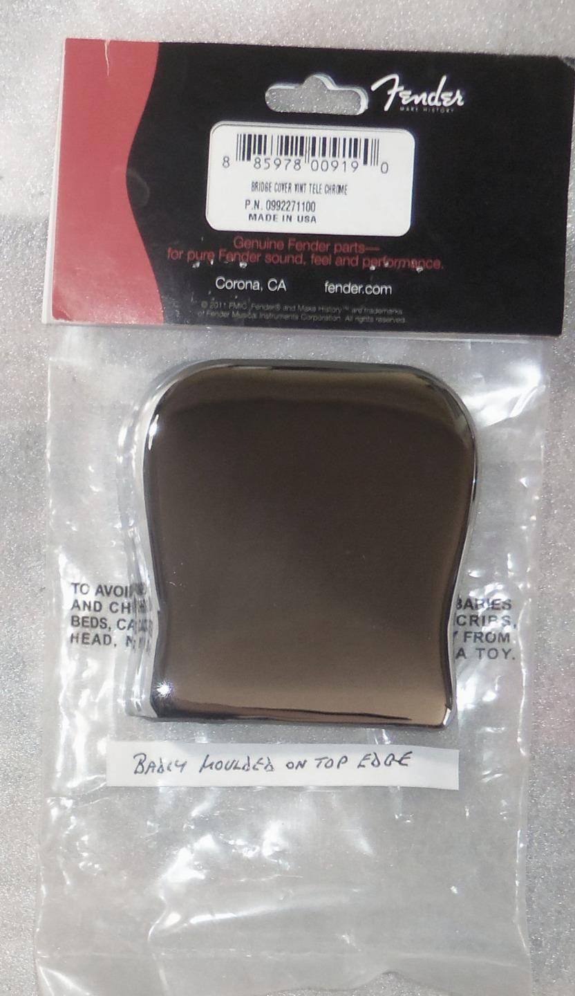 Genuine Fender Blemished “Ashtray” Chrome Bridge Cover For 3 Saddle Fender Telecaster Bridges.This Fender tele bridge cover is brand new, never used or installed.It arrived from the factory with uneven chrome plating on the front edge.The cover plate in the picture is the same plate you will receive.Made In The USA.