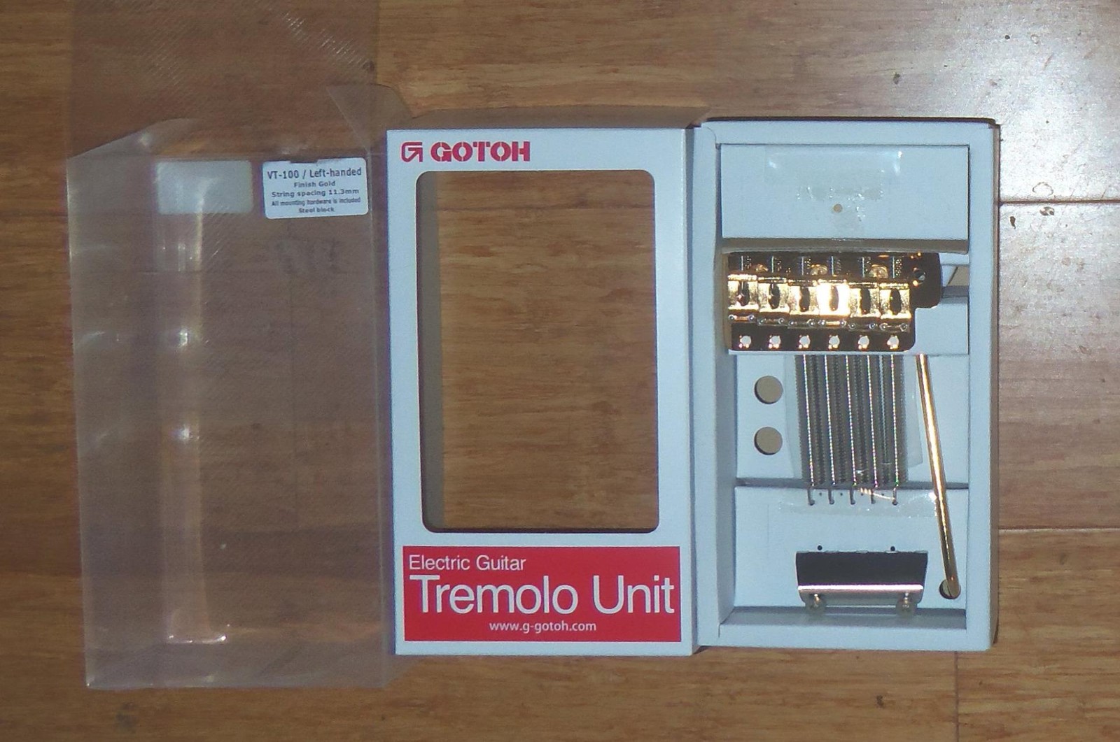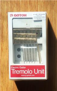 Brand New Gotoh VT-100 Gold LEFT HANDED Vintage Style Bridge Assembly.Solid Steel Block,2 3/16″ String & Mounting Spacing.All Of The Hardware That Is Needed For Installation Is Included.Will Ship GOTOH Boxed Packaged As Pictured.Made In Japan.