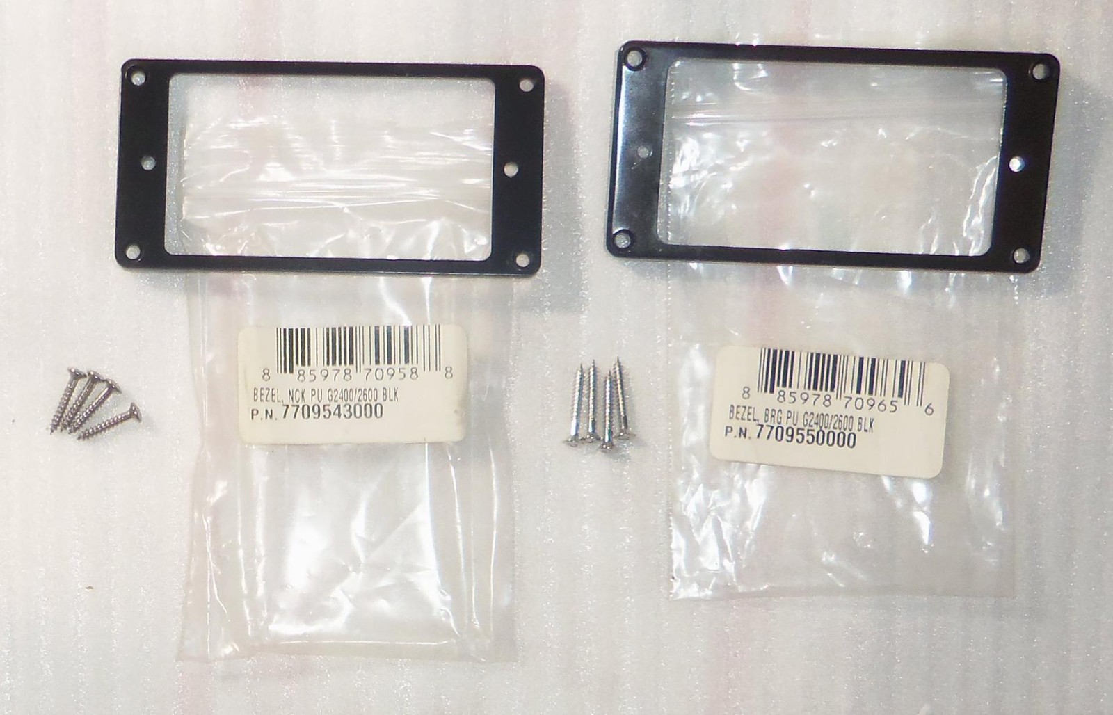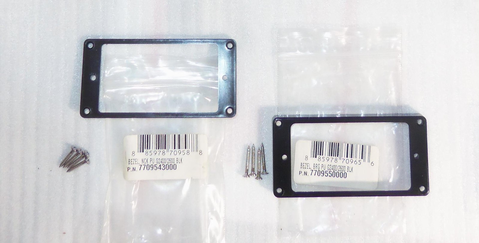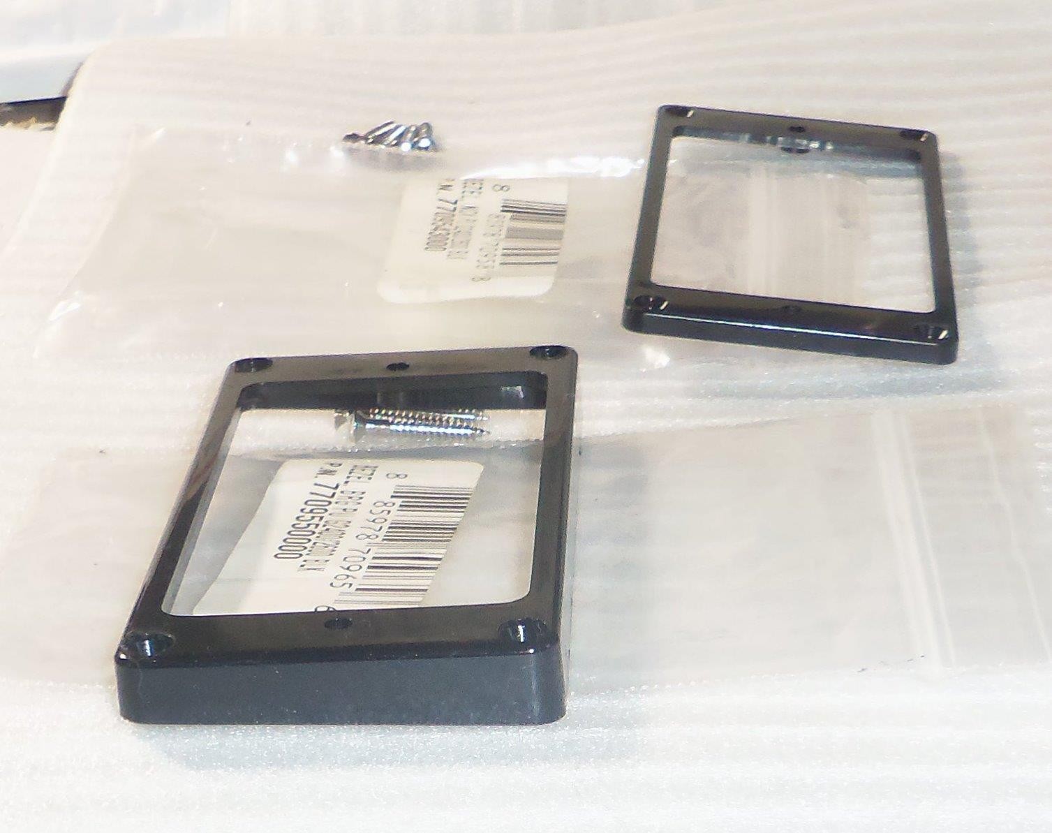 Brand New Old Stock Gretsch® Glossy Black Pickup Mounting Ring Set For The G2400/G2600 Series Gretsch Guitars.For 2 Screw Mount Pickups That Mount To The Bezel.Humbucker Ring Mounting Screws Are Included. Specifications: Inside Dimension : 70mm x 38.5mm Mounting Ring Mounting Holes: 84mm x 38mm