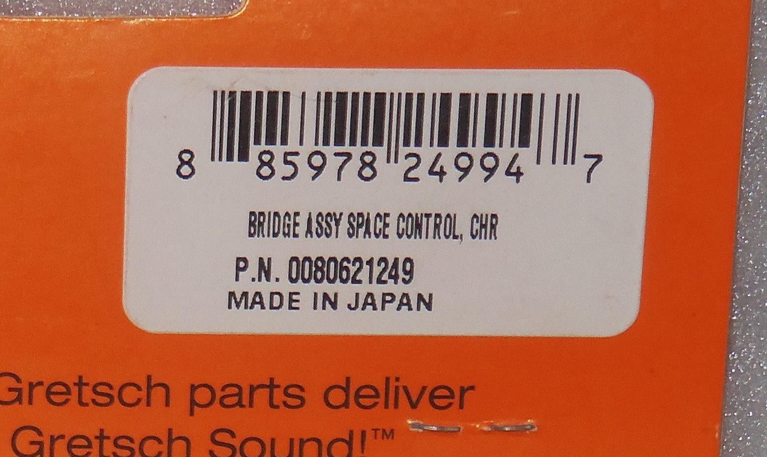 Brand new Gretsch Space Control Chrome Bass Bridge with Rosewood Base.The Bridge base measures 135.5 mm long, 15.5 mm wide & 12 mm at the highest point. Will ship factory packaged as shown.
