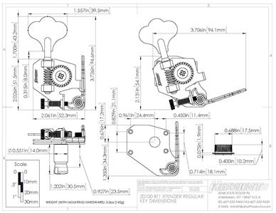 Take your music to new lows with the BT1 Bass Xtender™! A not so secret weapon of elite bass players since 1982, the Xtender™ allows you to instantly drop the tuning of your low string and then back again with the flip of a lever. The BT1 is a direct replacement for the Schaller® BM tuner traditionally featured on MusicMan® and G&L® basses. Many independent custom builders choose this Xtender as well.