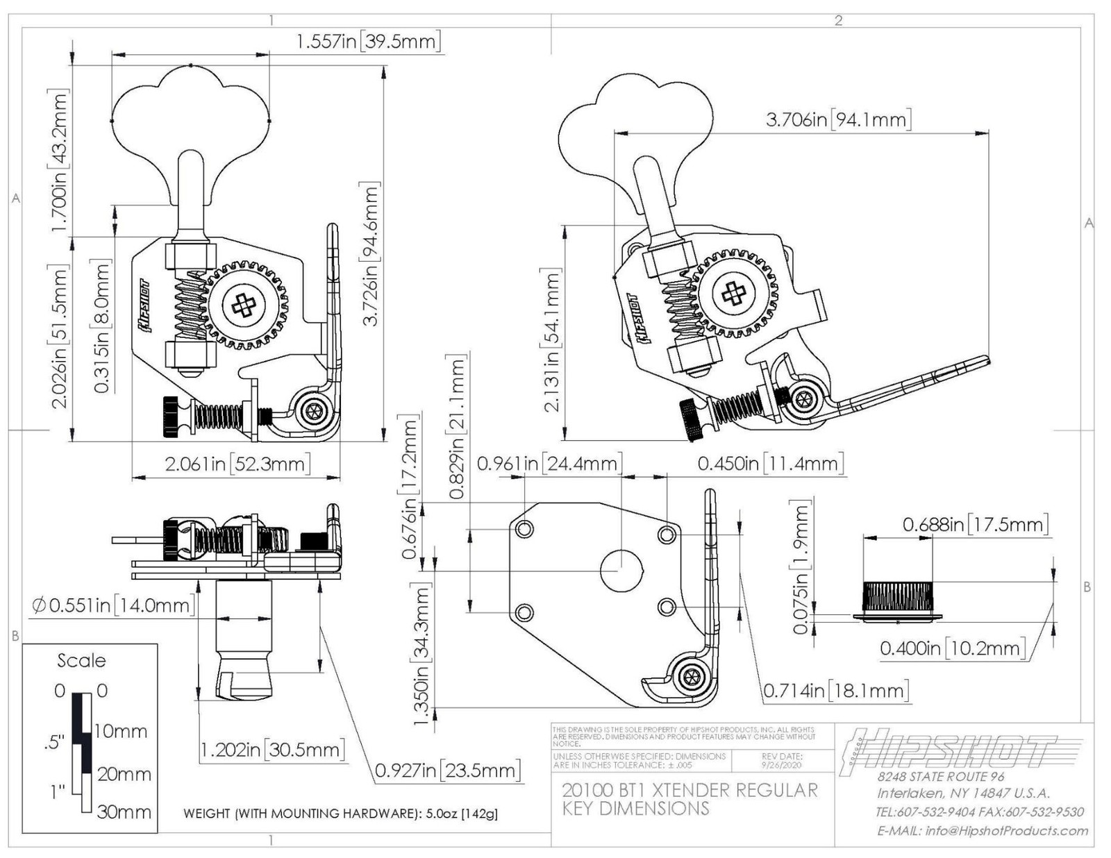 Brand New Hipshot BT1 “X-Tender” Drop D Tuner for bass guitar.Regular Key With A Black finish. From Hipshot: