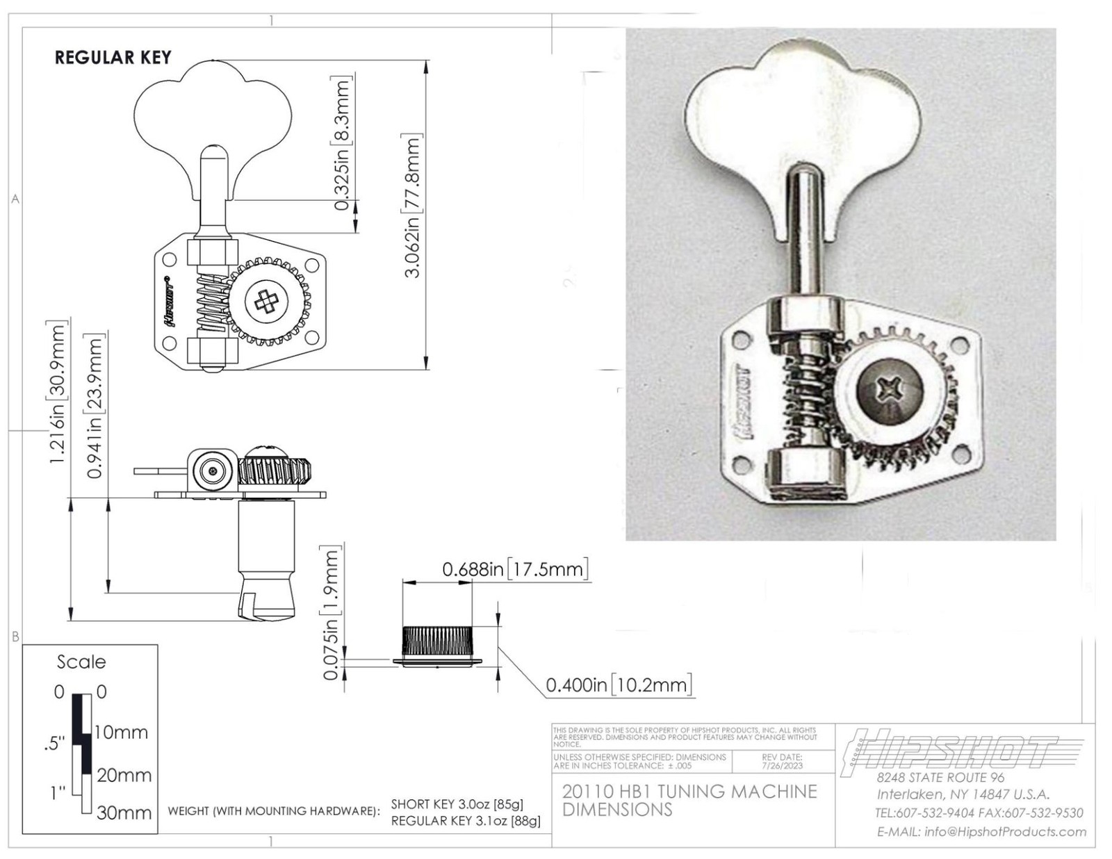 - Fits 11/16″ (17.5mm) headstock holes