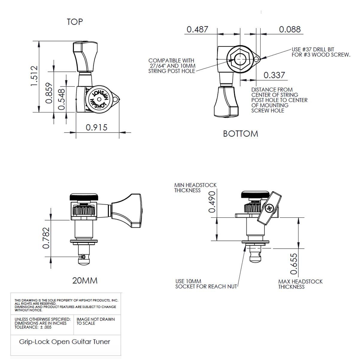 - 6 Chrome Hipshot Grip-lock locking tuners, with 18:1 ratio